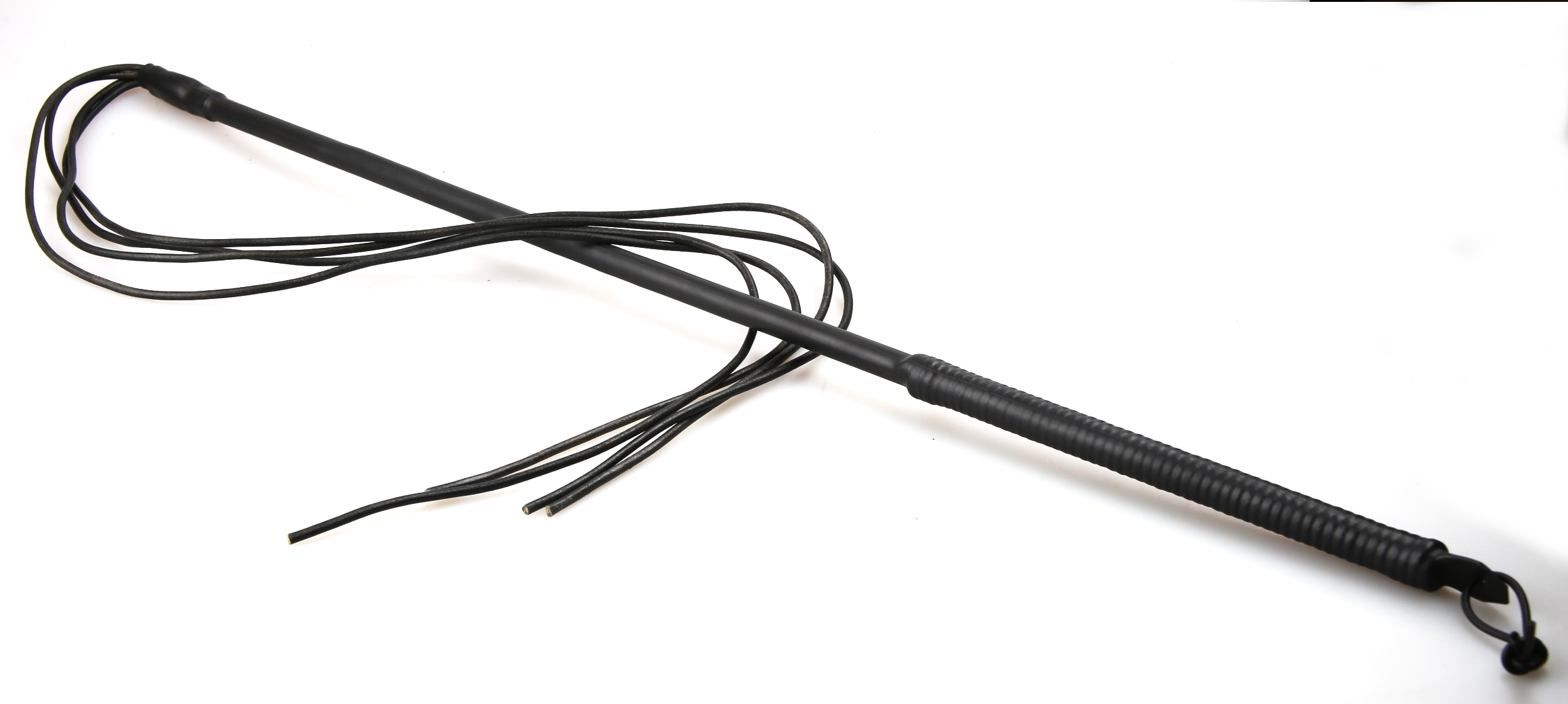 Der schlanke, präzise Griff liegt sicher in der Hand; daran folgen vier identische Stränge von jeweils ca. 60 cm Länge, die zusammen mit dem Griff eine Gesamtlänge von über einem Meter ergeben.
