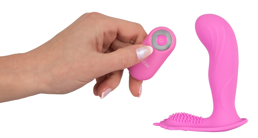 Der Vibrator kann dezent im Slip getragen werden. Steuerbar per Knopfdruck oder Fernbedienung.