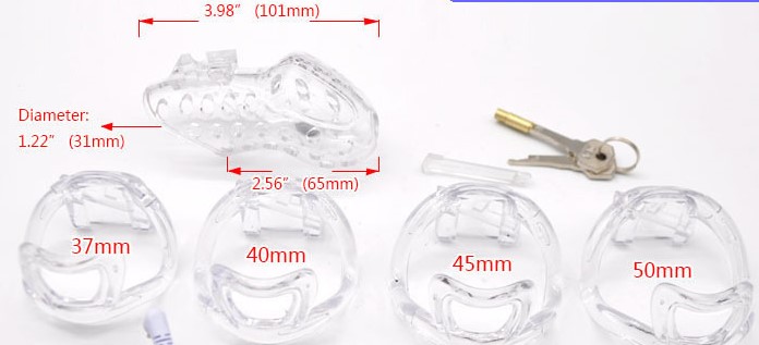 Keuschheitskäfig, abschliessbar und vier Ringe! schwarz oder transparent, bitte wählen!