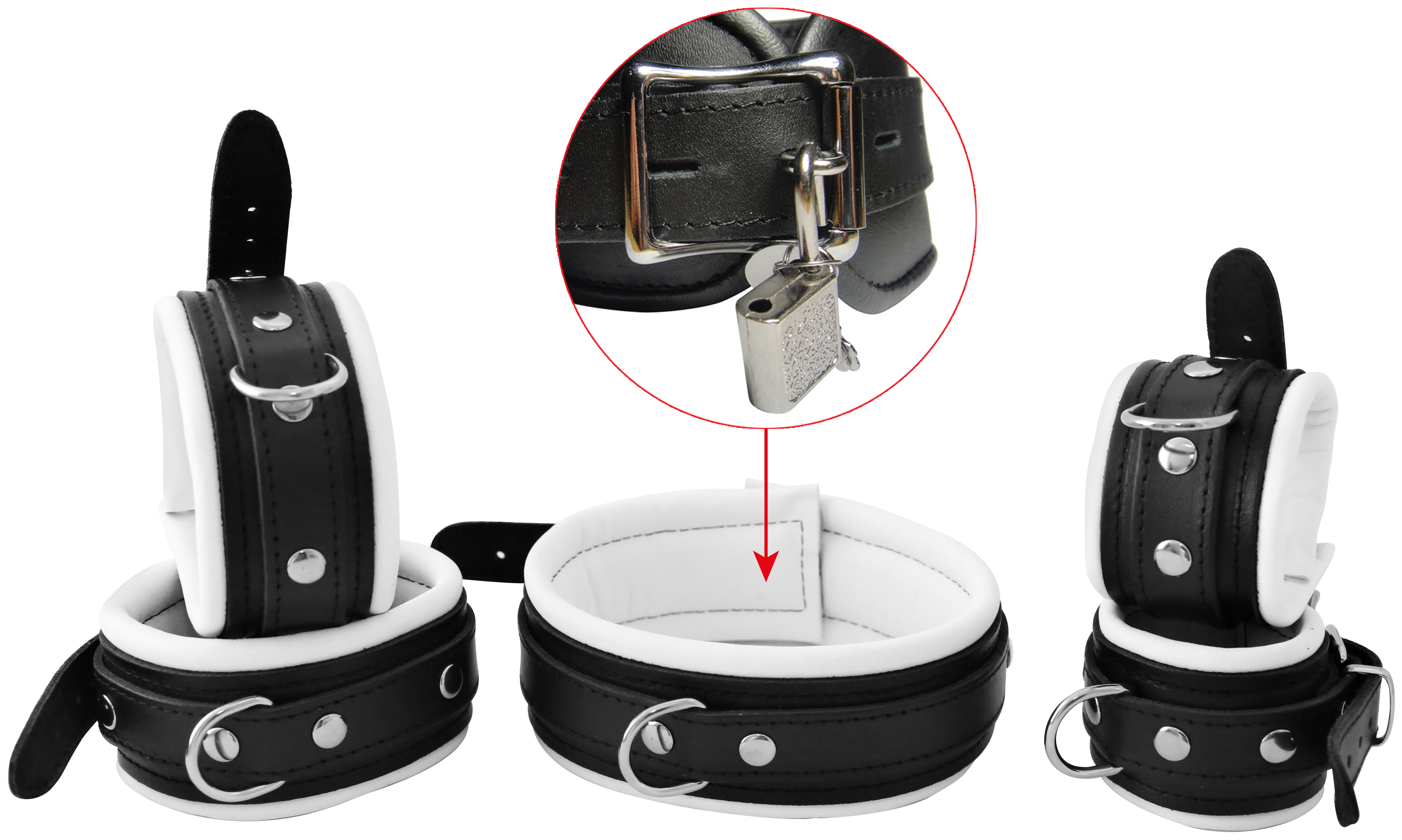 Leder Fesselset Weiß abschließbar