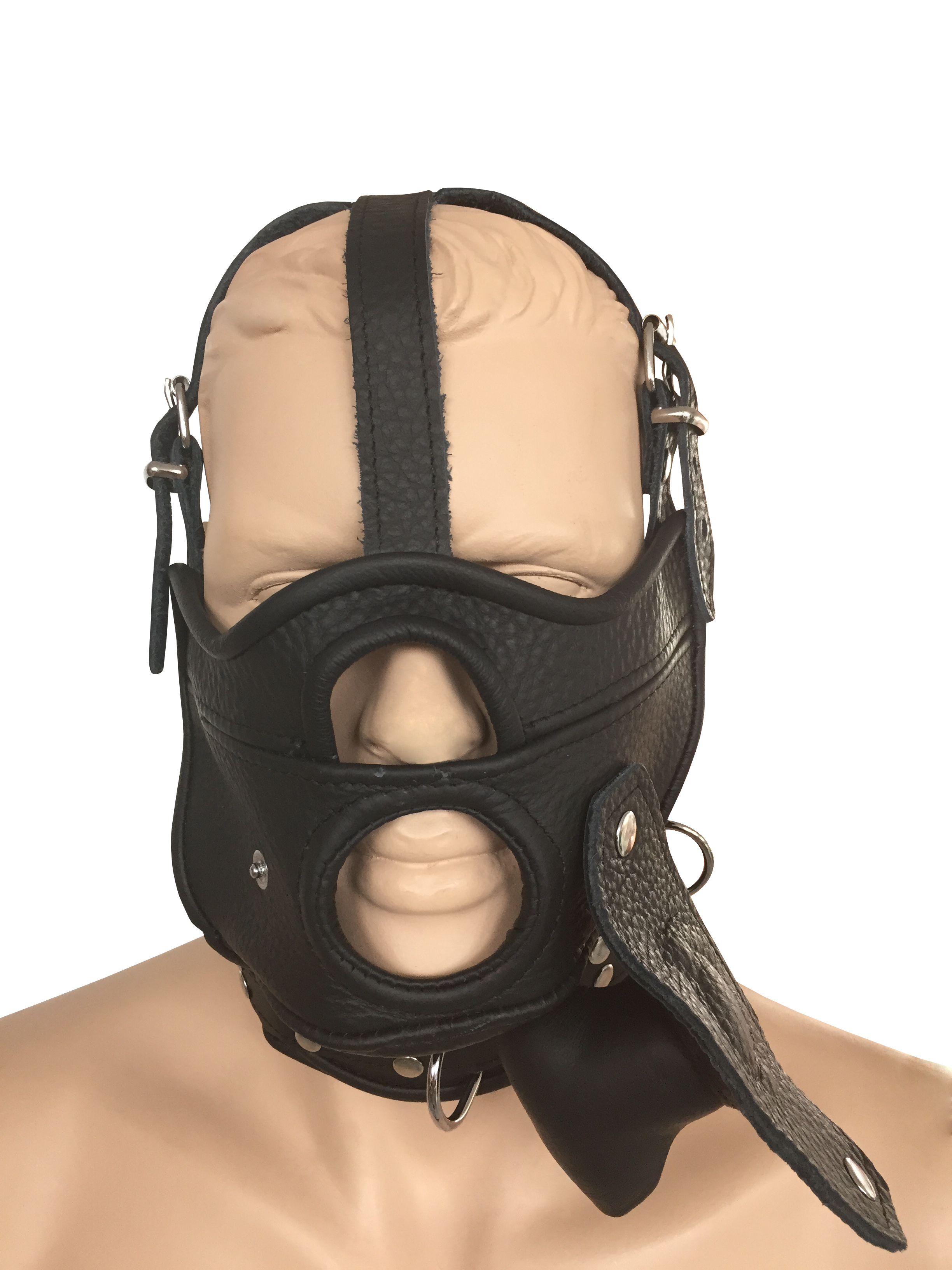 Maske aus weichem Leder mit Mundöffnung.