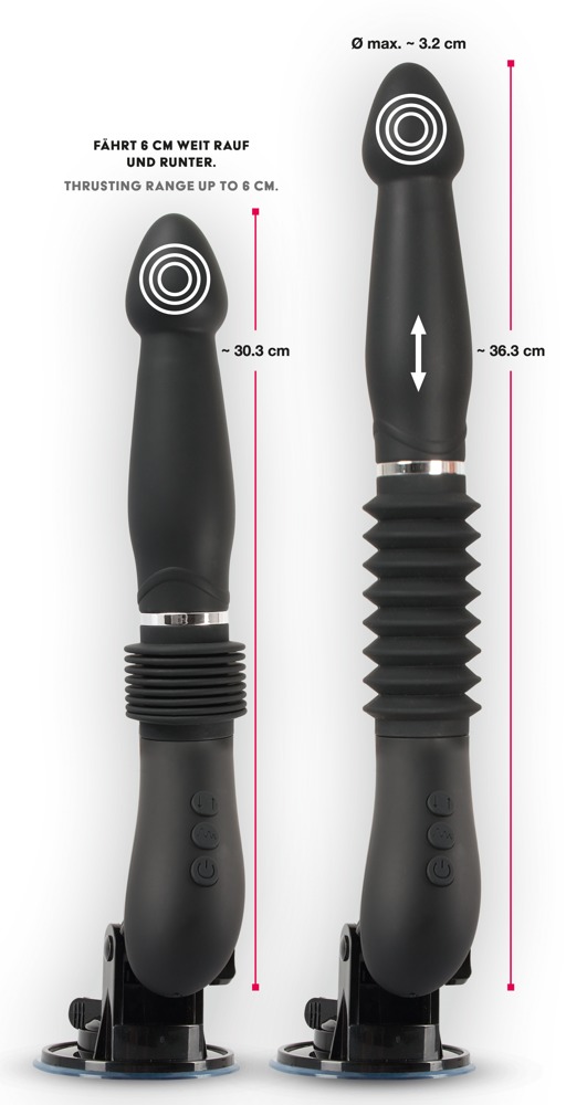 Gesamtlänge 30,3-36,3 cm, Einführlänge 15 cm, Ø 4,2 cm. Silikon, PU, ABS.