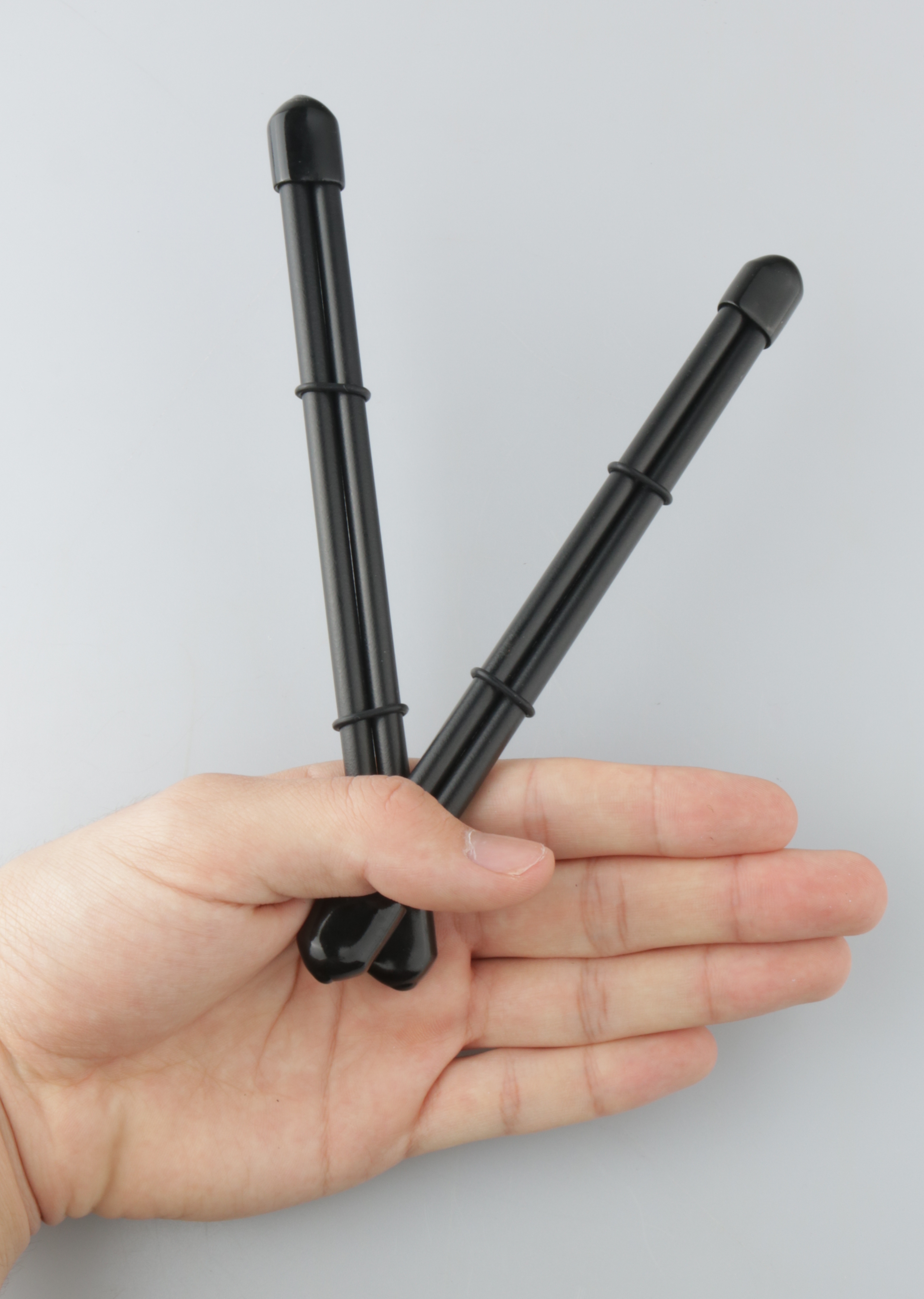 Mit Gummiendkappen und Gummiringen. Mit den Ringen wird die Intenssität reguliert.